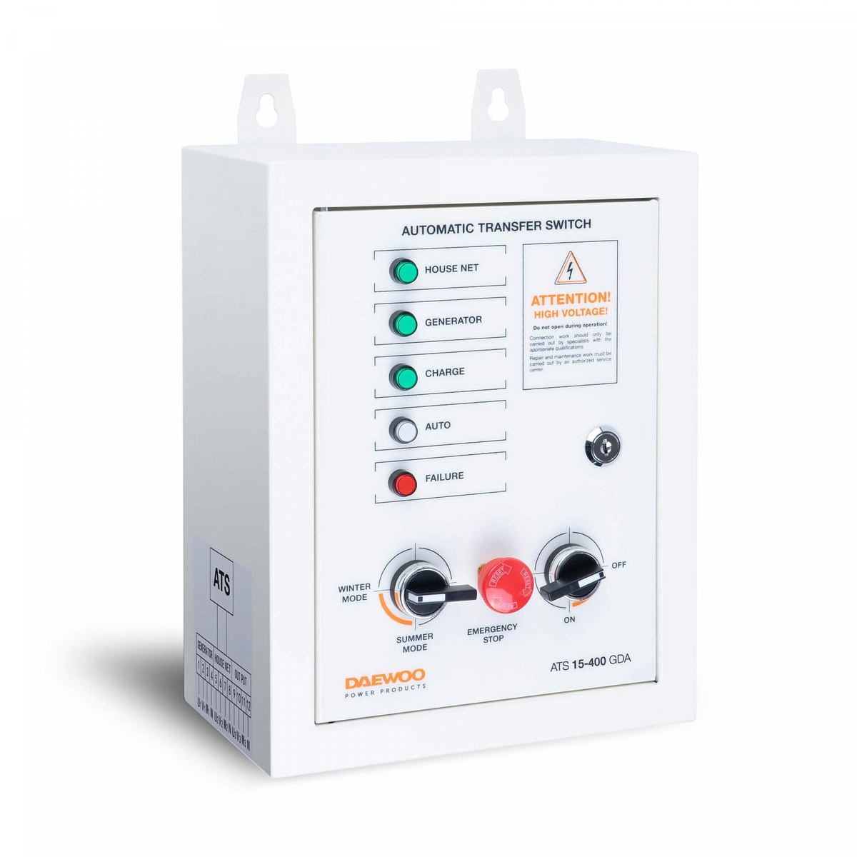 - Automatyczne uruchomienie agregatu w przypadku zaniku zasilania lub spadku napięcia w sieci podstawowej