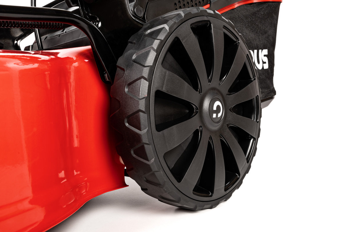 - duże, łożyskowane koła pozwalają łatwo manewrować kosiarką